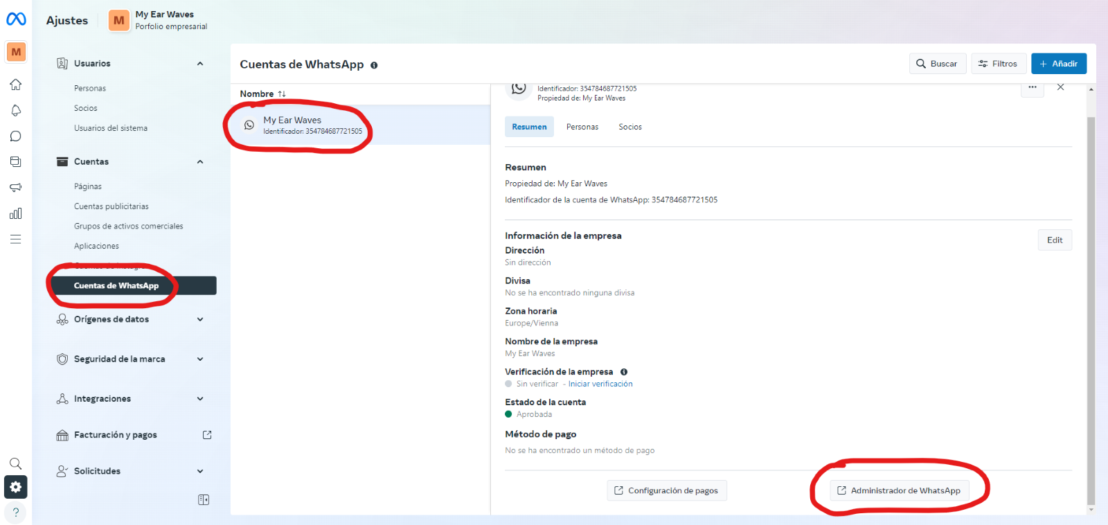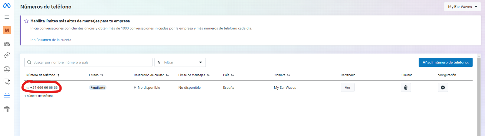 * Confirm that the Meta Business Manager identifier is linked to the Wamoca number.&#x20;