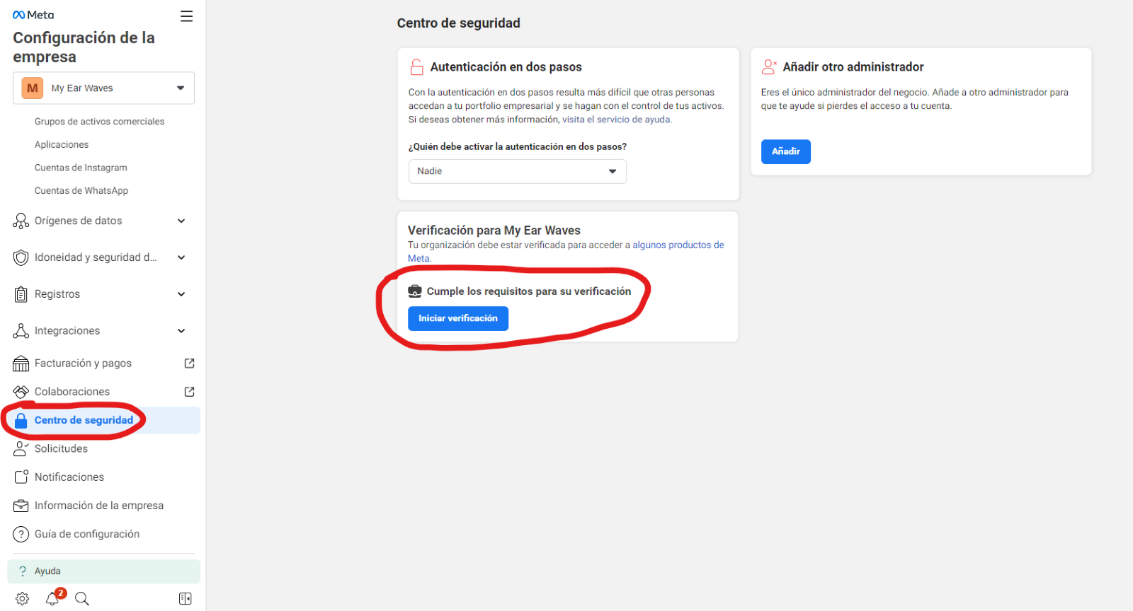 This step will allow you to **increase the number of users you can send messages to in 24 hours**. If your company is not verified by Meta, you will only be able to send messages to 250 different users in that period.