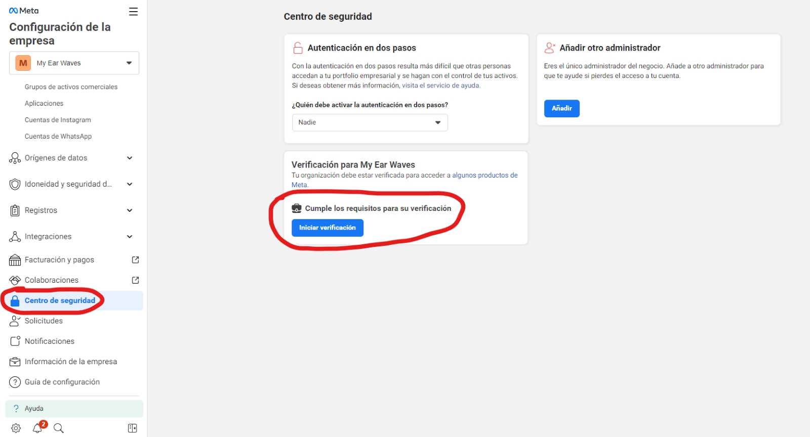 Meta/Facebook must verify your company's corporate identity. Follow these steps: