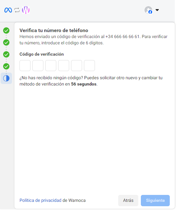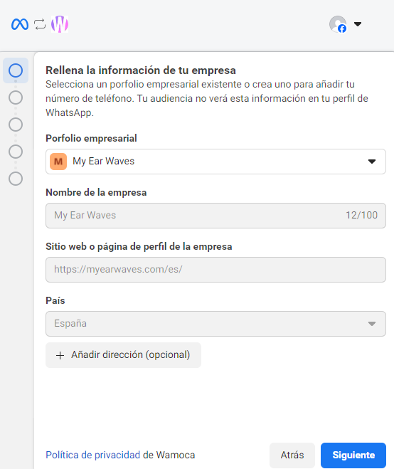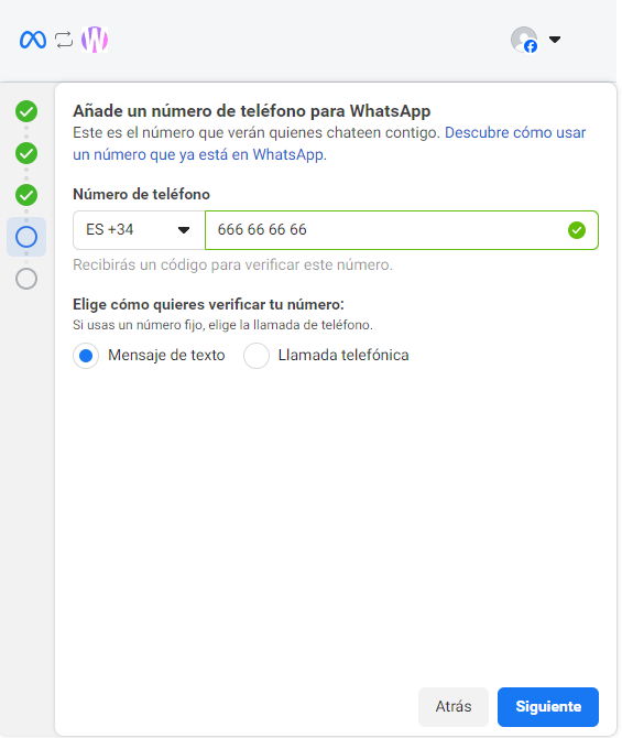 Add the phone number you want to use for this WhatsApp Business account. As we said at the beginning, if you already have a WhatsApp account linked to this number, you will need to delete that account. If it is still active, you will not be able to continue.