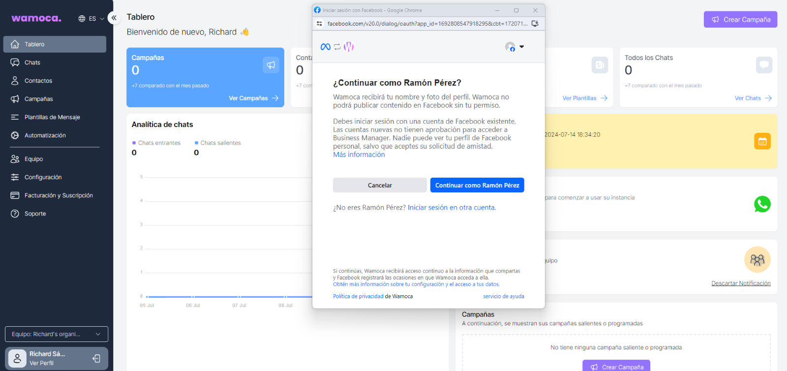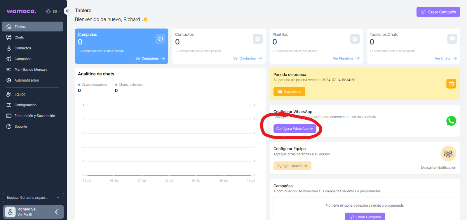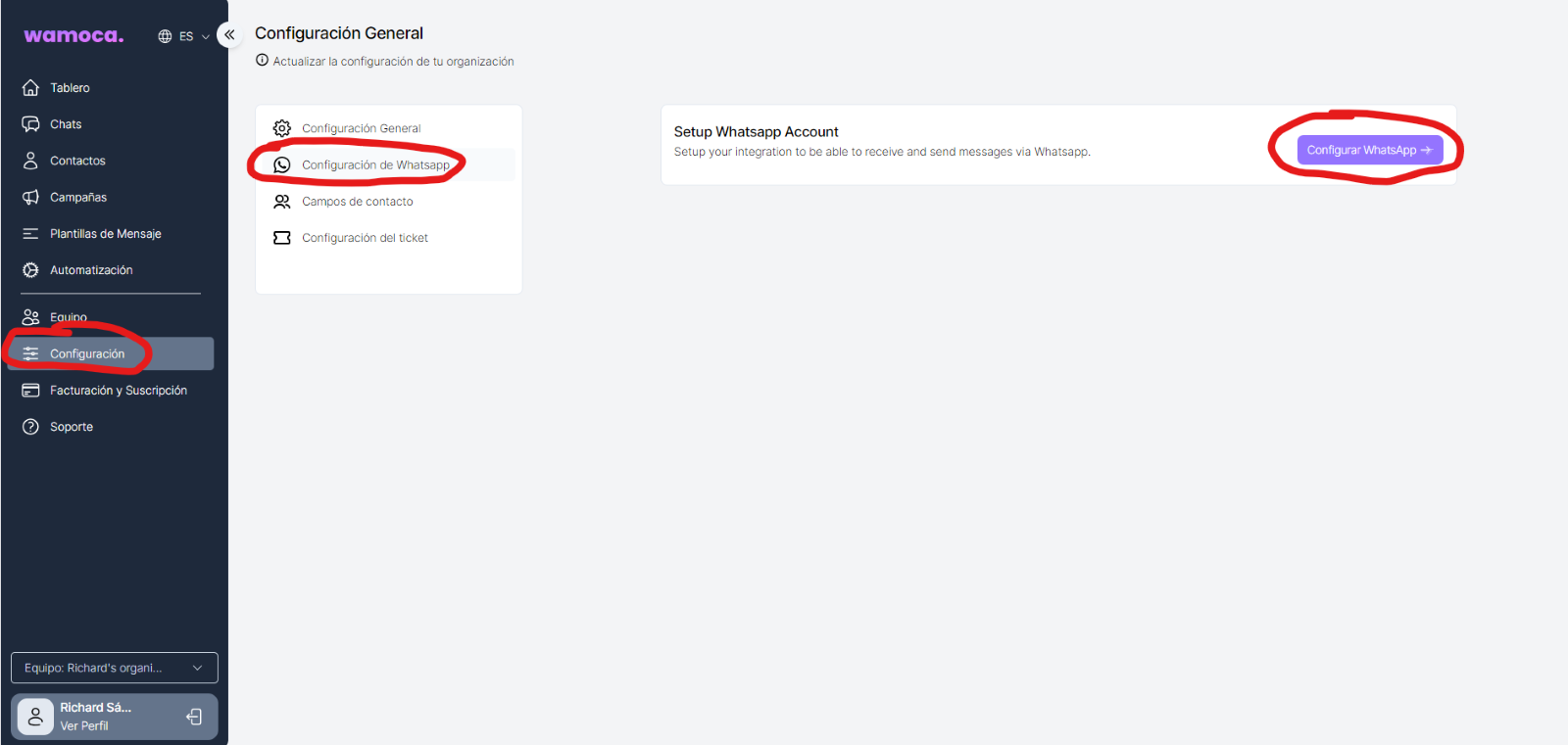Log in to the Wamoca platform and click on ‘*Configure WhatsApp*’: