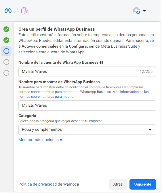 Fill in the WhatsApp Business names, select your business category and click ‘*Next*’.