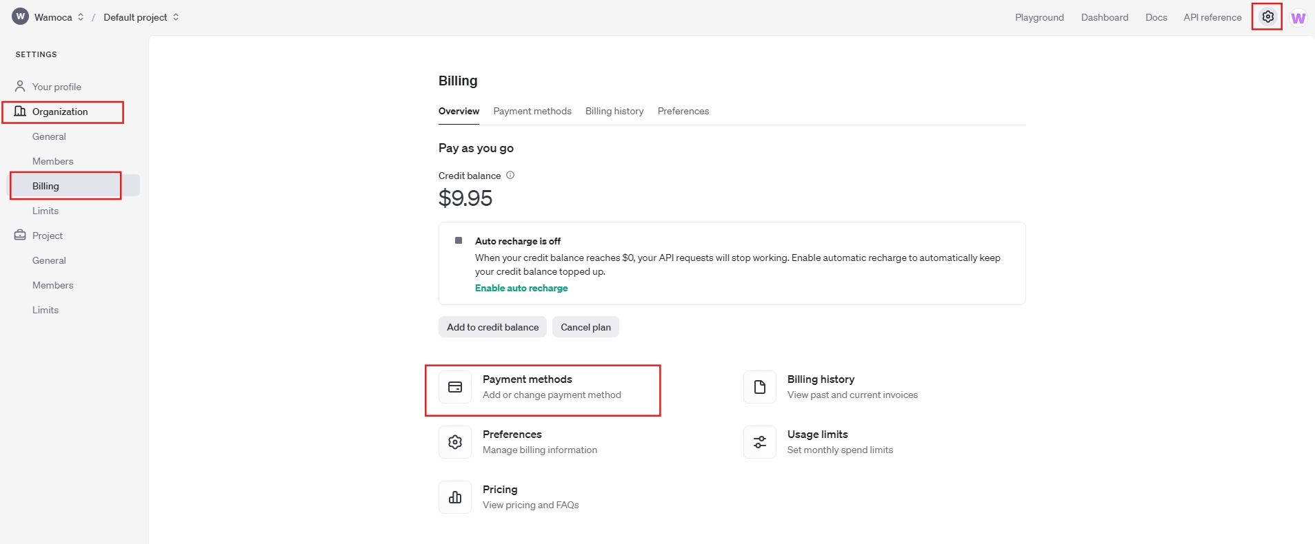 Finally, to make use of this functionality, a payment method must be added to OpenAI. To do this, go to Settings > Organisation > Billing