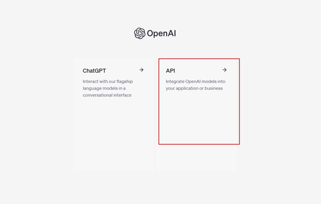 Once registered, a screen will appear where we will have to choose ‘ChatGPT’ or ‘API’. Select ‘API’: