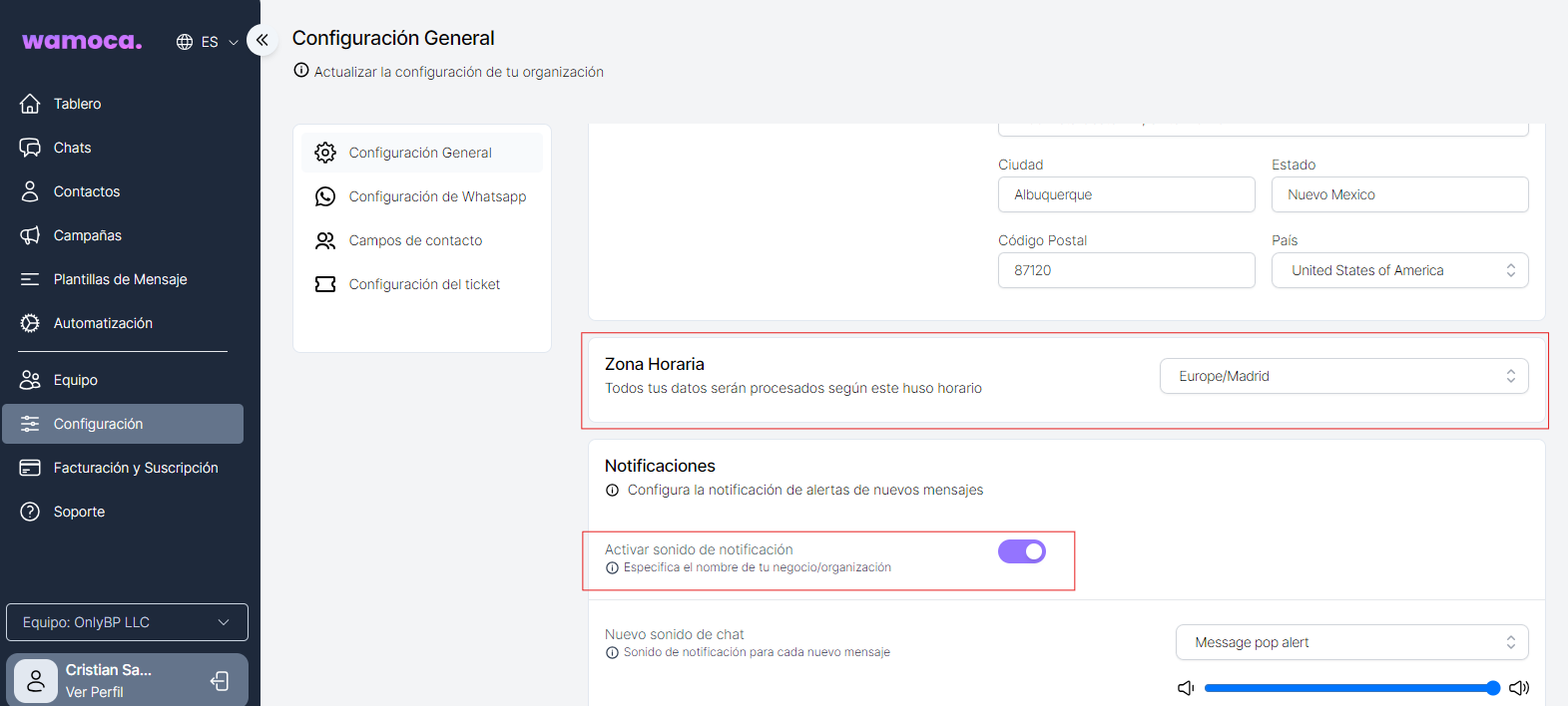 * **Time zone**: You must ensure that you have selected the correct time zone for campaigns to work correctly.