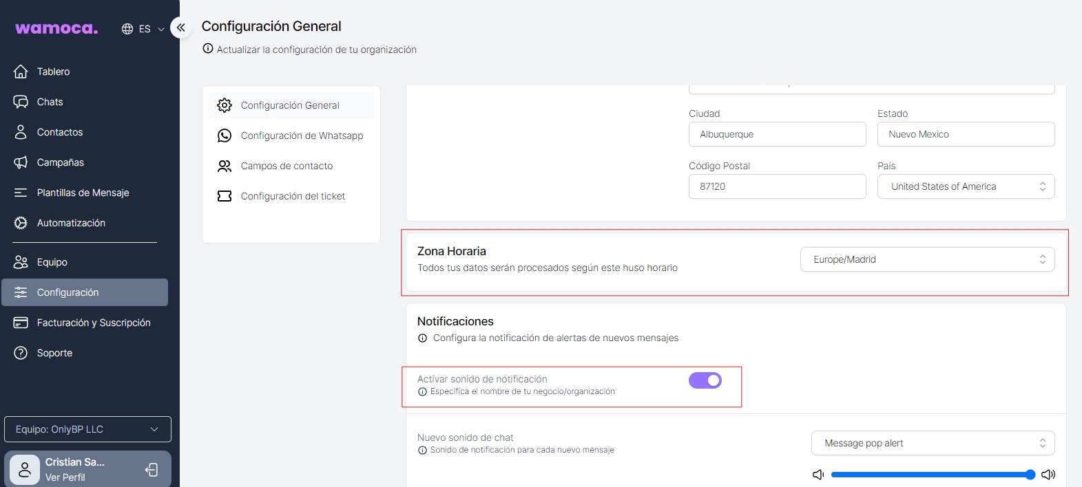 Time zone: You must ensure that you have selected the correct time zone for campaigns to work correctly.