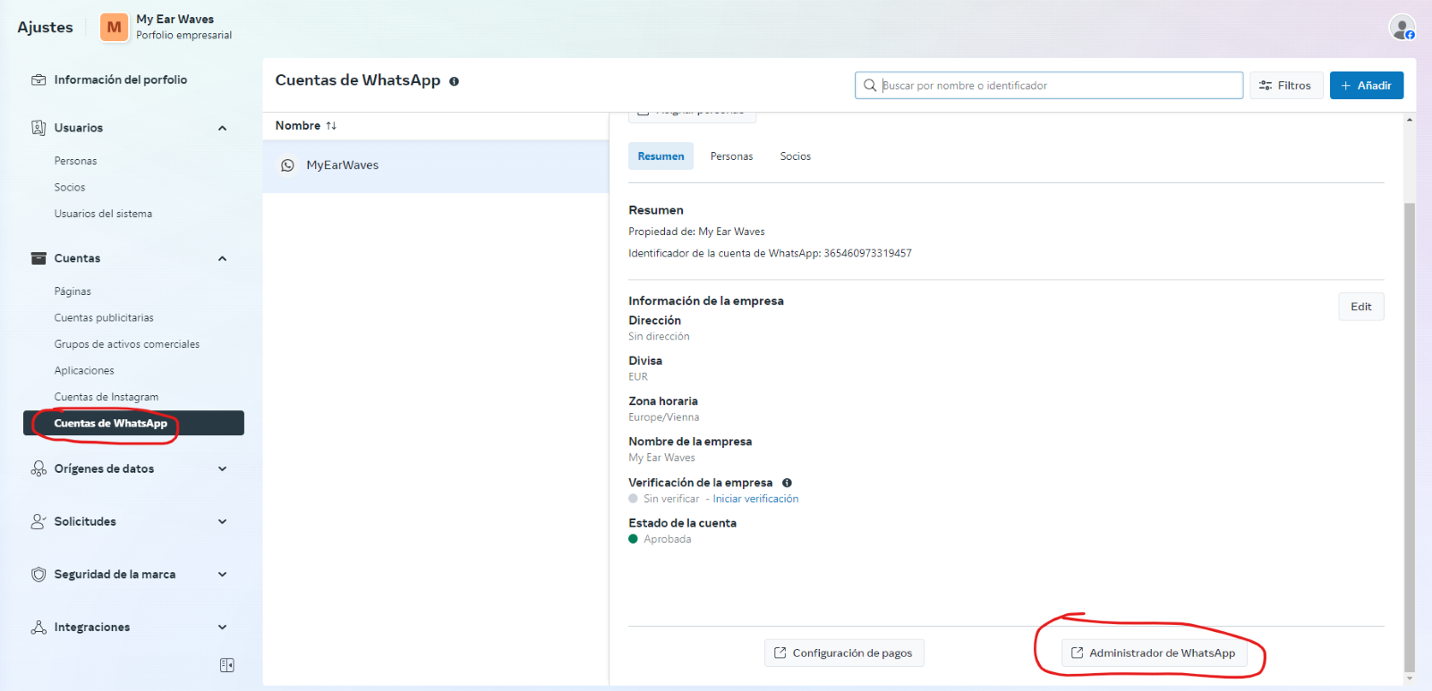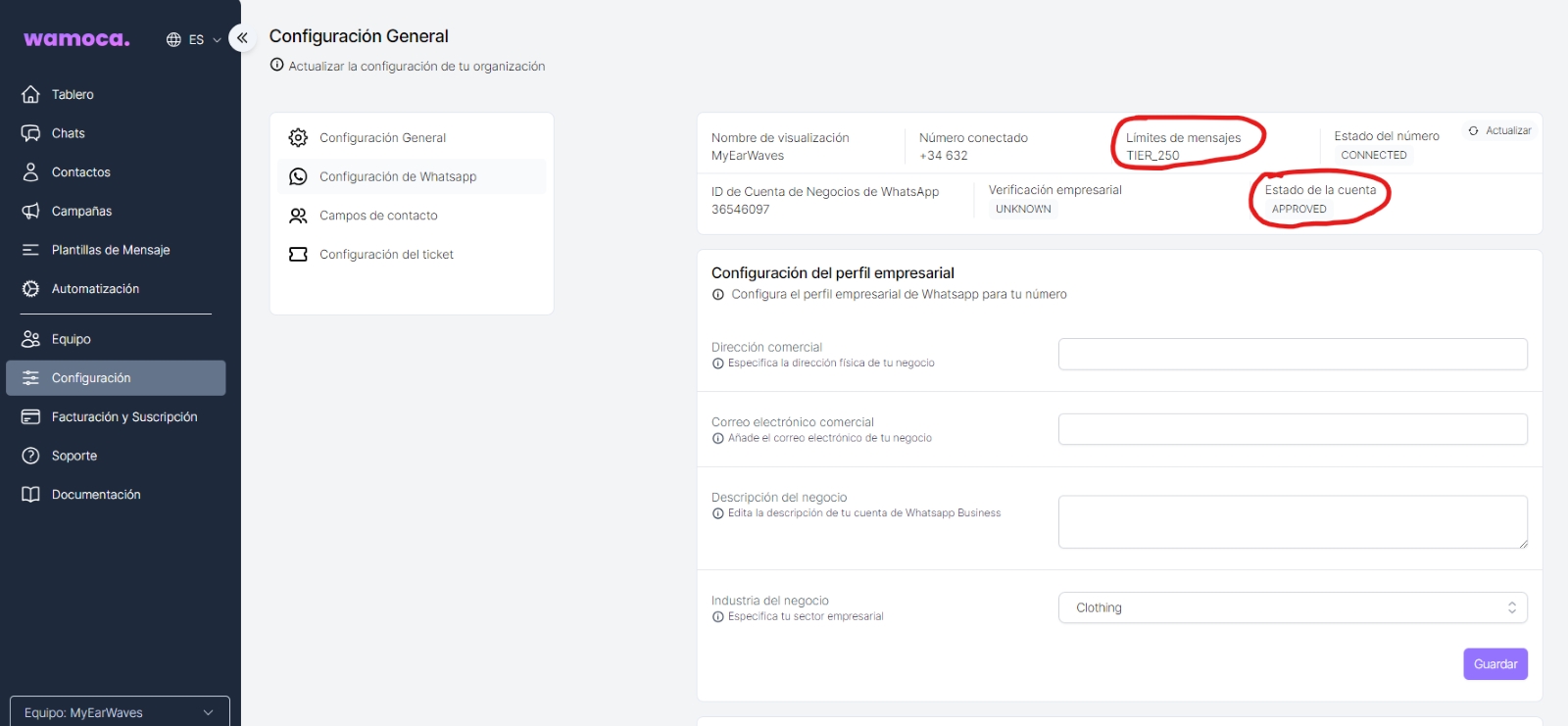 In Wamoca, you will be able to view only the Account Status and message limits in Settings > WhatsApp Settings.